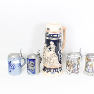 Los-Nr.: 409 5 versch. Bierkrüge, tlw. mit Zinndeckel