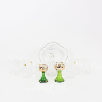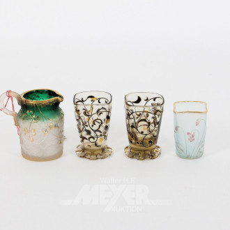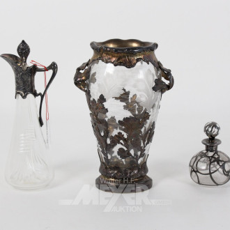 Konvolut: Vase mit Metallaplikationen, kl. Likörkaraffe,