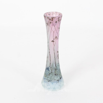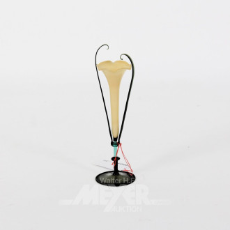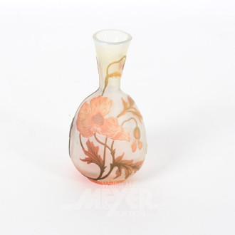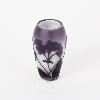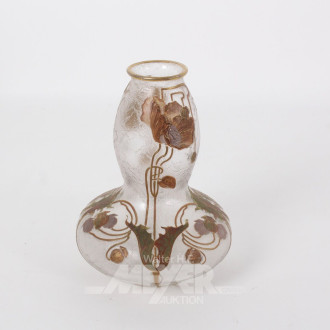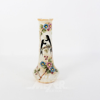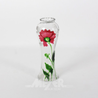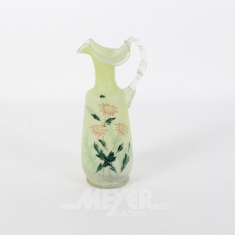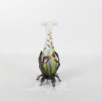 kl. Milchglas-Tischvase mit Irisblüten und Vergoldung,