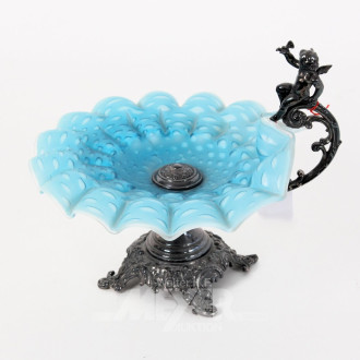 Höhe: 19 cm, Metallfuß mit blau/weißer gerüschter Schale