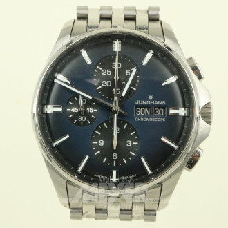 Hersteller: Junghans, Modell: Chronoscope, Edelstahl, Seriennummer: 27/4228.44, getragen, ohne Box, ohne Papiere, Kleberückstände an der Unterseite