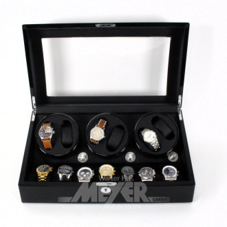 10 Herrenarmbanduhren in großer, abschließbarer Uhrenschwenkerbox