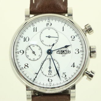 Hersteller: Eugen Wegner, Modell: The One Chronograph, Edelstahl, Ziffernblatt: Weiß, ungetragen, ohne Box, ohne Papiere, bedingt gangbar
