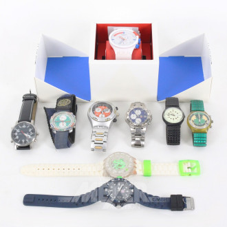 Hersteller: u.a. Swatch, dabei: 5x Swatch, des Weiteren u.a. United Colors of Benetton, 1x Candy Time - FC Bayern München Fanartikel etc. jew. derzeit nicht funktionsfähig, teilw. mit deutlichen Tragespuren, 1x Swatch mit Box und Papieren