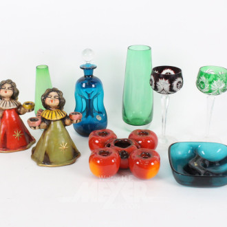 Posten mundgeblasene, filigrane Figuren, Vasen und Gefäße