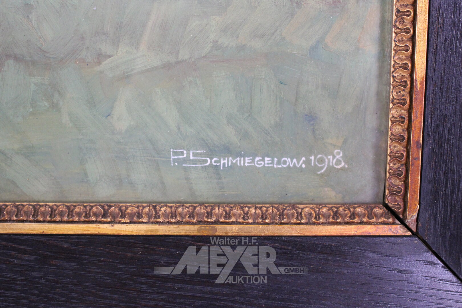 r.u. bez., J. Berg, Material: Öl/Lwd., 1925, 35 x 39 cm, goldfarb. Holzrahmen, Rahmen bestoßen, Leinwand leicht beschädigt