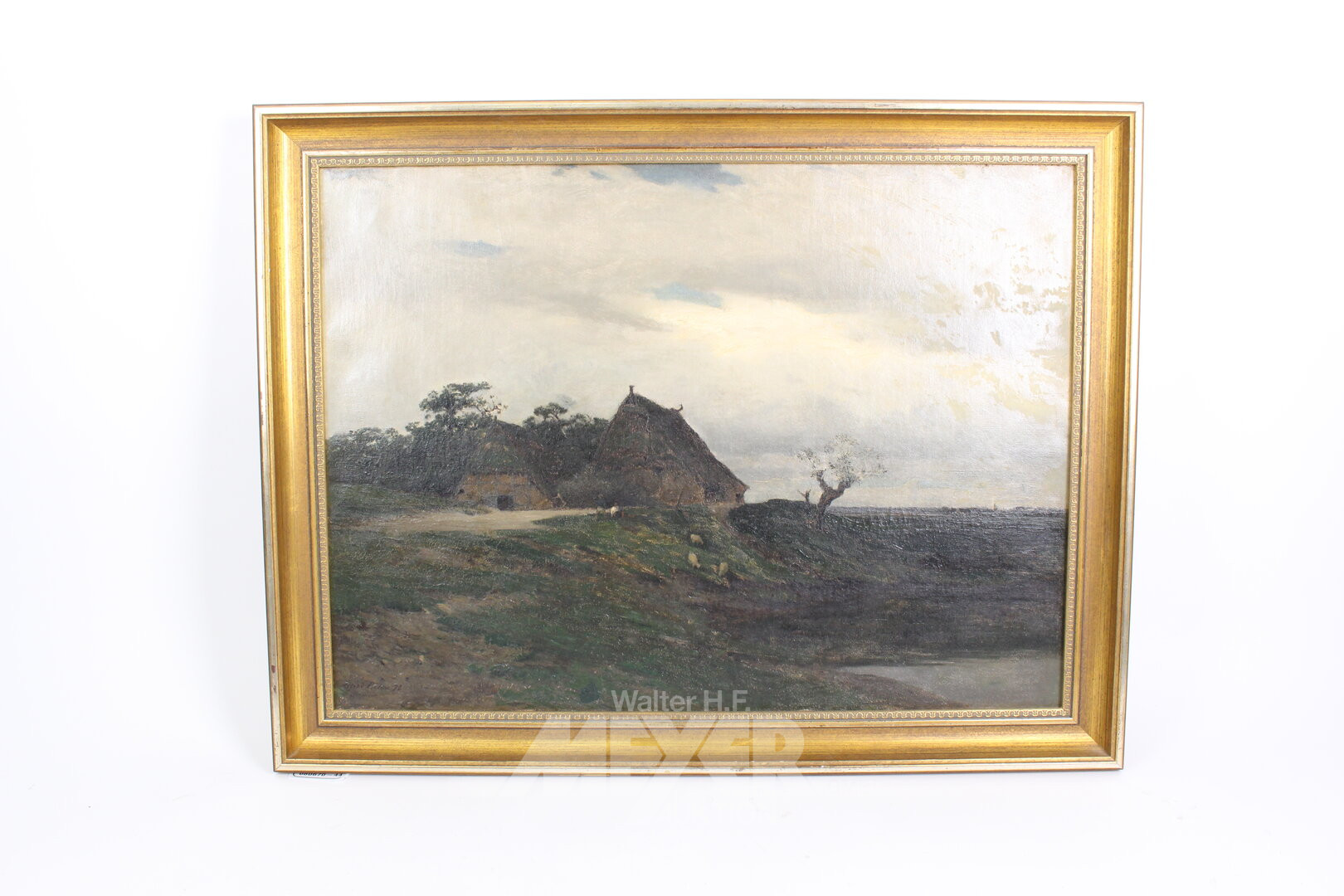 r.u. bez., J. Berg, Material: Öl/Lwd., 1925, 35 x 39 cm, goldfarb. Holzrahmen, Rahmen bestoßen, Leinwand leicht beschädigt