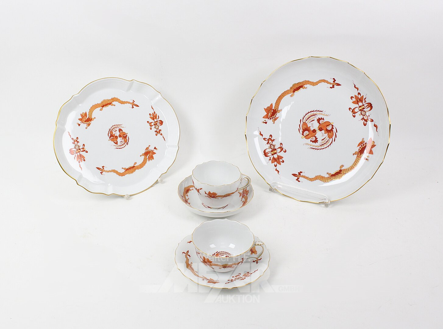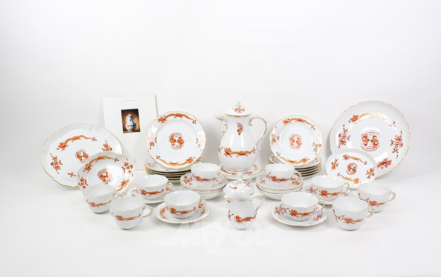 Hutschenreuther, Dekor: Zwiebelmuster, tlw. minimale Gebrauchsspuren, ca. 72 Teile, dabei: 24 Kaffeetassen mit 12 Untertassen, 24 Desserteller, Tortenplatte, Étagère, Milckkanne, Sahnegießer, Zuckerdose mit Deckel, Schalen und div. Servierplatten