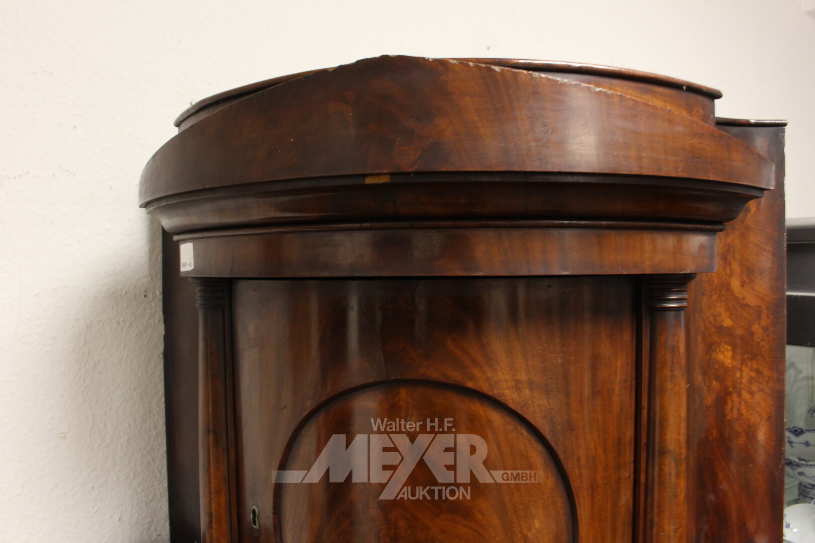 Mahagoni, Alter / Epoche: 19 Jh., Höhe: ca. 195 cm, Mahagoni furniert, 1-türig, mit Furnierschäden