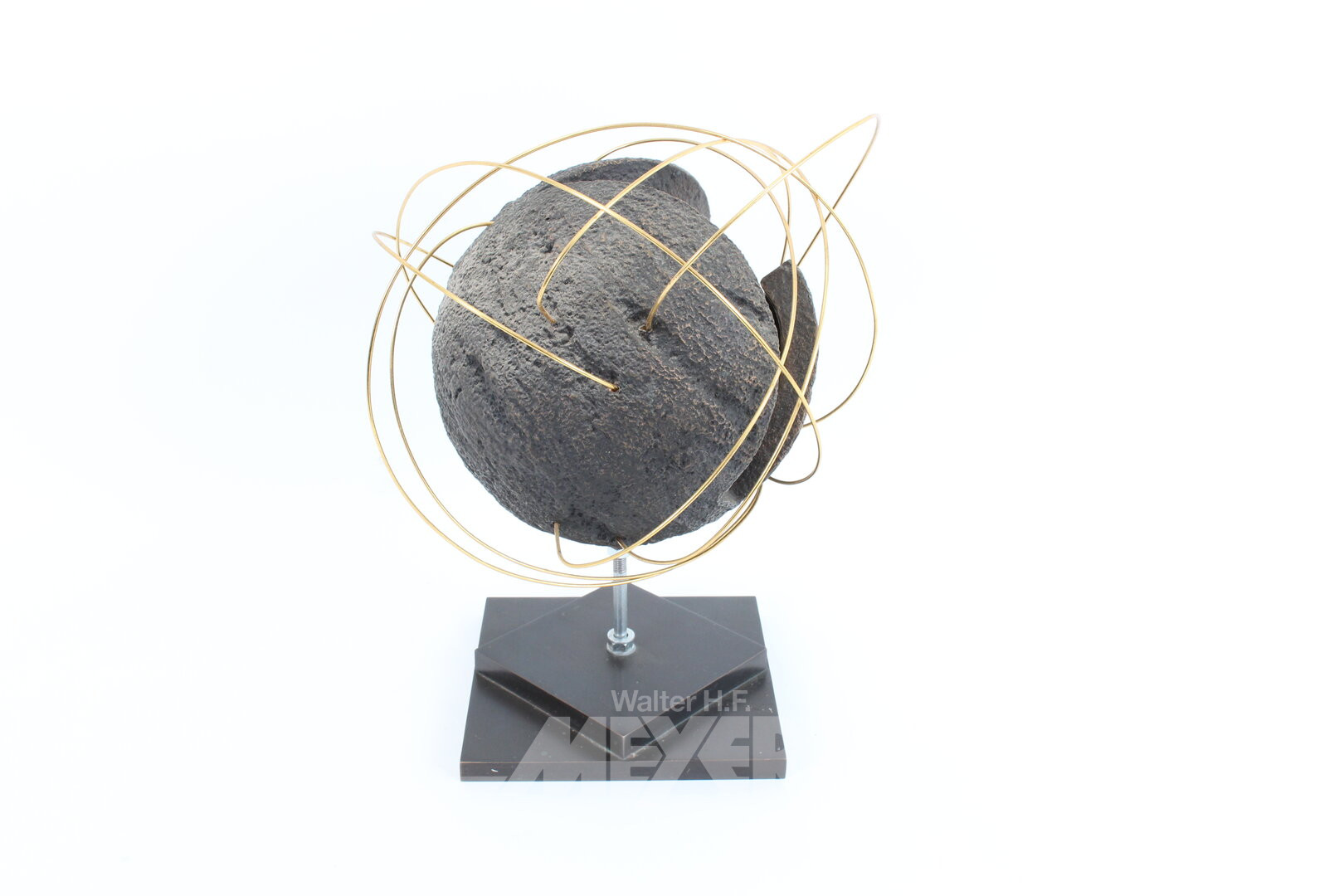 schwere Skulptur "Durchbrochene Kugel mit Kreuz"