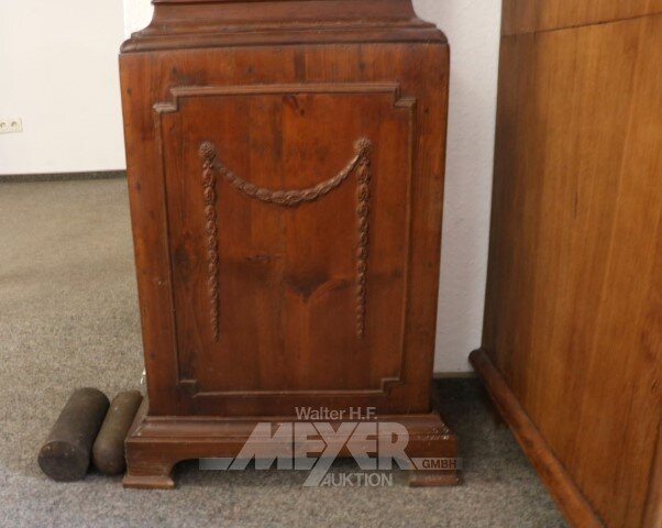 Mahagoni, Höhe: 218 cm, ungeprüft, römisches Ziffernblatt mit Wildszenenbild im Hintergrund, Pendel und Gewichte vorhanden